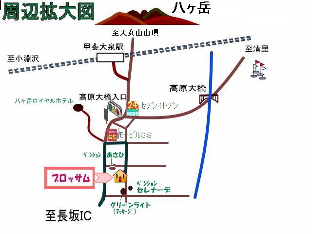 小牧IC→(中央自動車道190キロ)→長坂IC→(一般道28号線10分)→ブロッサム |