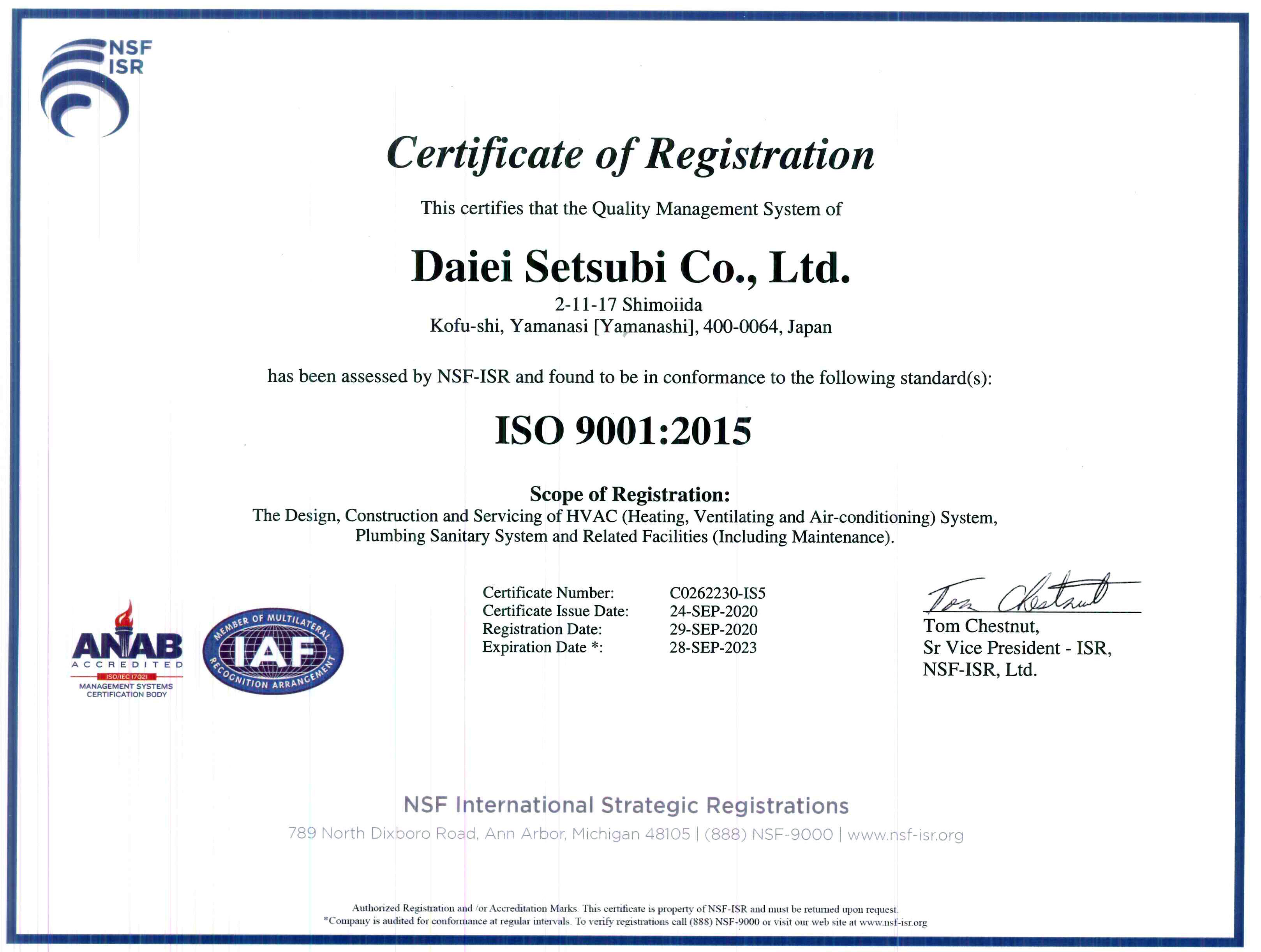 (認証登録番号 C0262230-IS5)