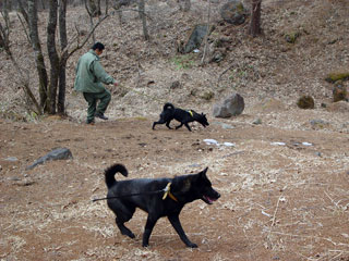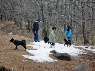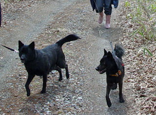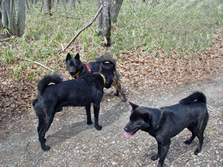 ←3人のお姉さんに囲まれて、2匹の甲斐と黒介は楽しそう。