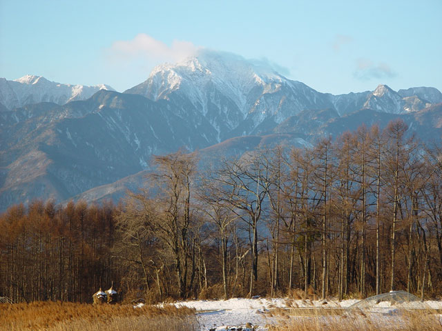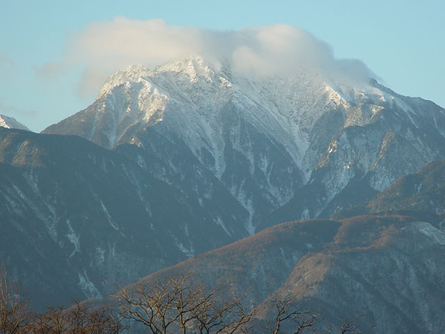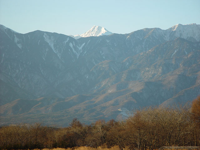 甲斐駒の横には、北岳がかおを出しています。雪の時期の南アルプスは
