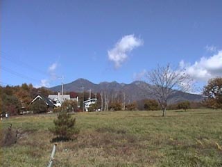 近くの路上から撮った 八ヶ岳の秋の遠景 と 敷地内の雑木林 をご覧下さい。