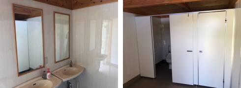 | トイレ ・男子用(小2基・大1基)・女子用(2基)ウォシュレット完備。 |